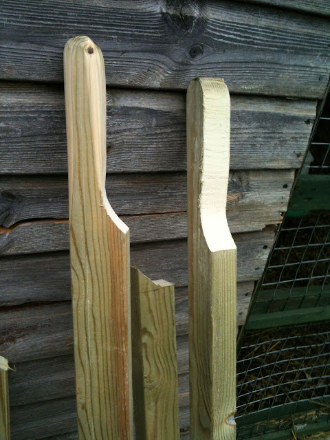 Using this as a template I cut the 3 side planks for each side with a hand saw and electric jigsaw.